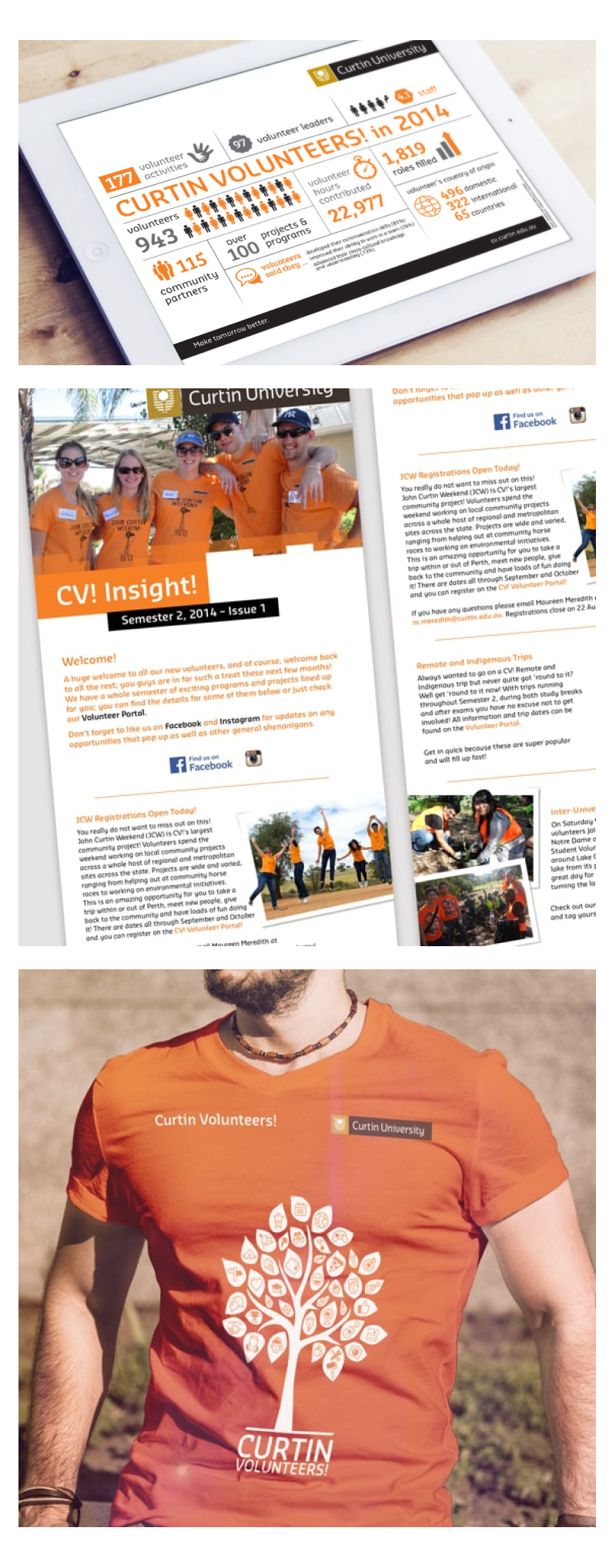 Over 3 years I supported Curtin Volunteers by creating a variety of marketing collateral. The work included the Curtin Volunteers "Insight" email newsletters, event posters for on-campus advertising, and infographics for the organisation's impact report.